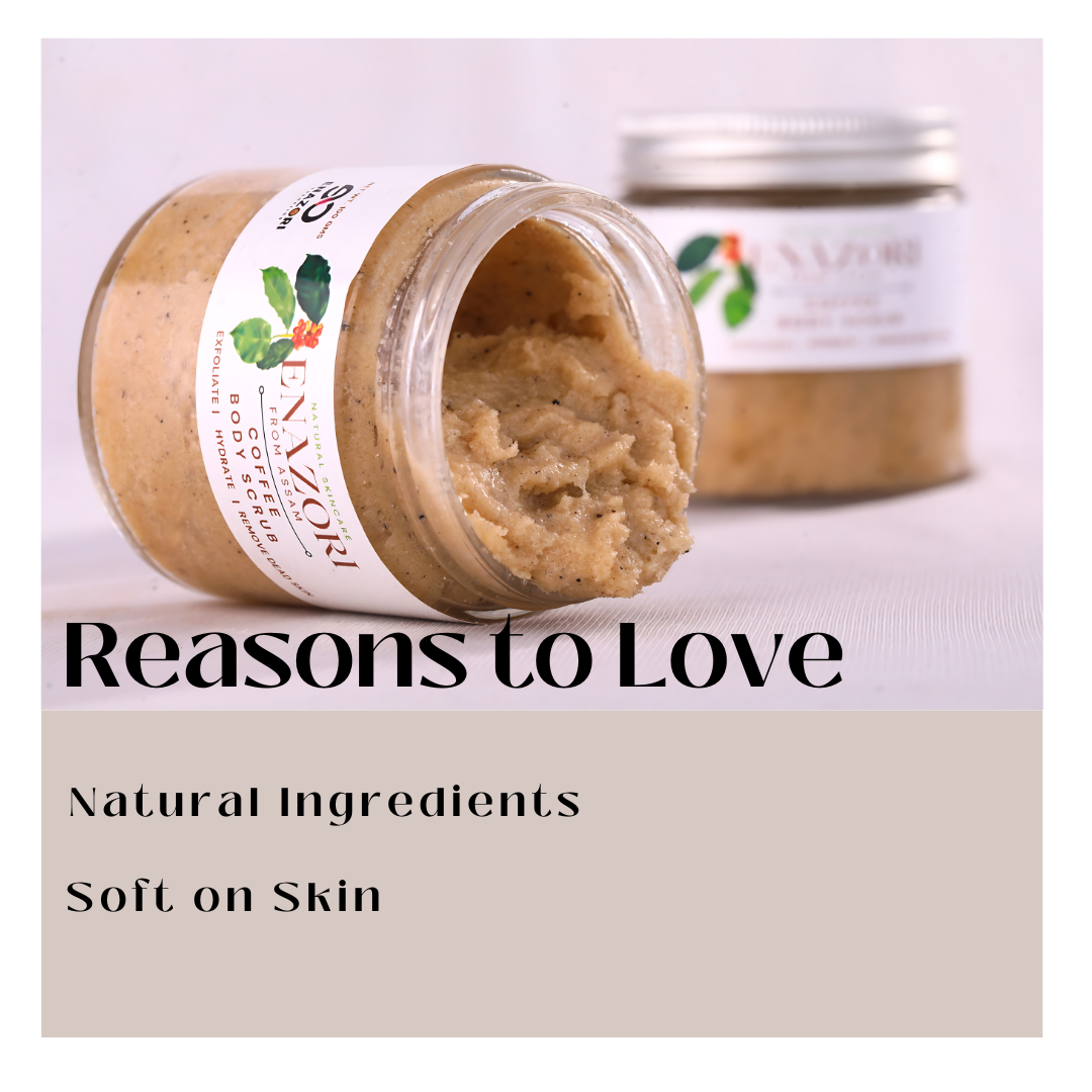 Indulge in the rich, aromatic experience of our Coffee Body Scrub. This invigorating scrub exfoliates gently with natural coffee grounds, leaving your skin smooth, firm, and revitalized. Infused with nourishing oils and the bold scent of fresh coffee, it awakens your senses while promoting a healthy glow. Discover the essence of Assam's natural beauty with our eco-friendly, rejuvenating body scrub packed in a reusable glass jar.