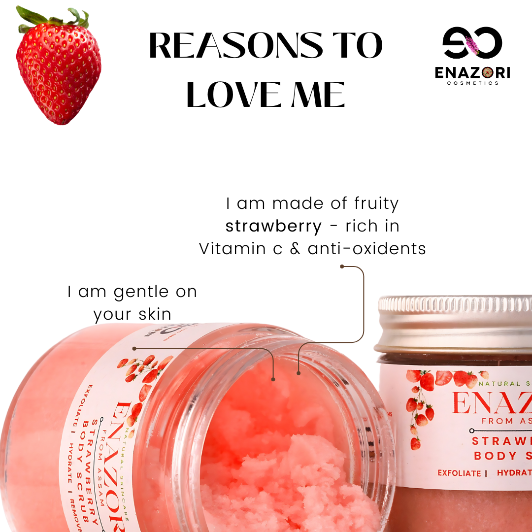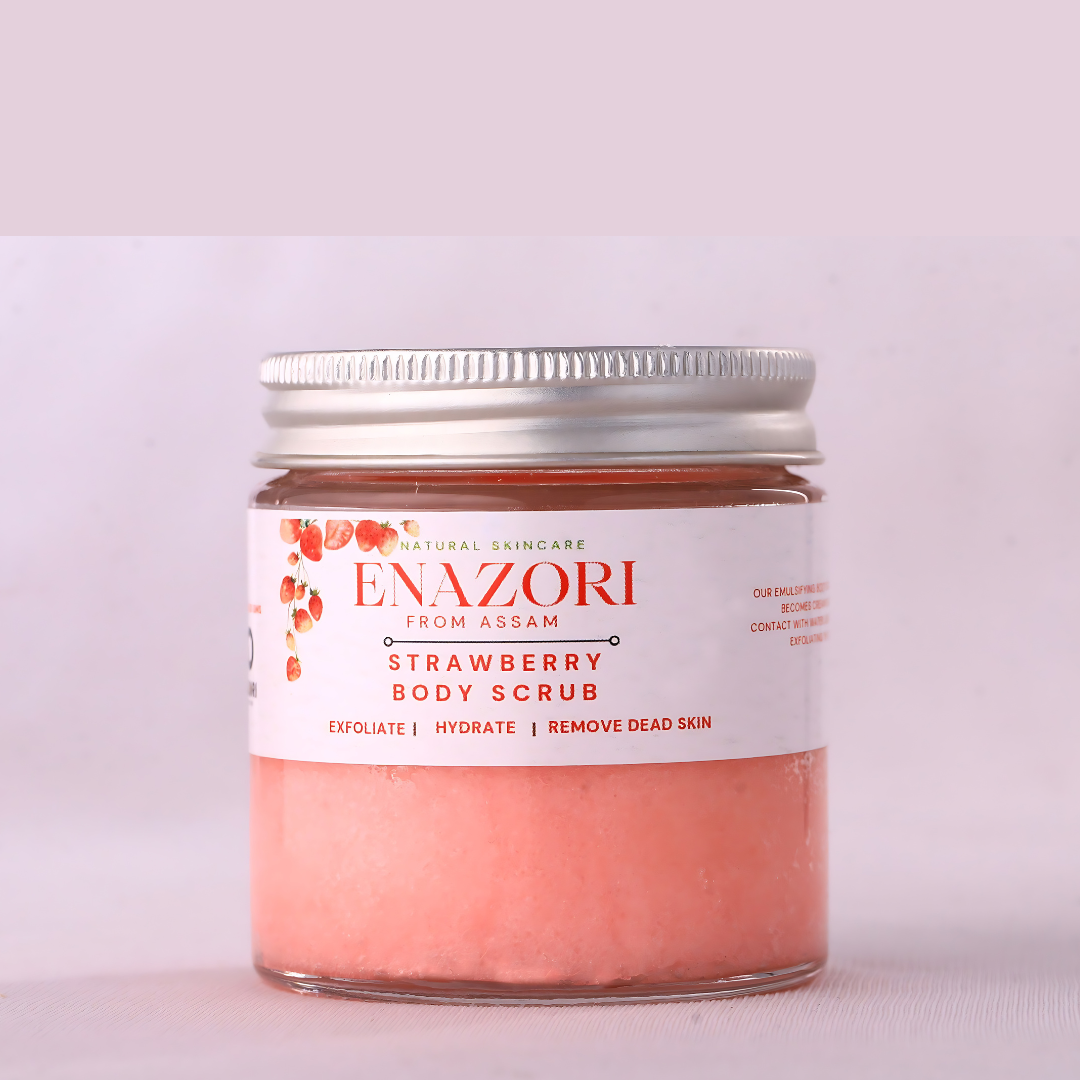 Delight in the fruity freshness of our Strawberry Bliss Body Scrub. This invigorating scrub gently exfoliates with natural ingredients, leaving your skin soft, smooth, and glowing. Infused with the sweet essence of ripe strawberries, it provides a refreshing and revitalizing experience. Embrace the natural beauty of Assam with our eco-friendly, indulgent body scrub packed in a reusable glass jar